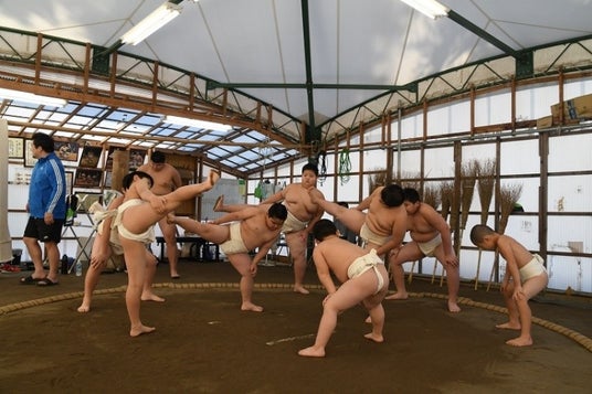 ~大山親方(元 北勝富士)らを輩出した道場で、日本一の先輩が後輩へ継承する「心・技・体」。寒さを吹き飛ばすぶつかり稽古~