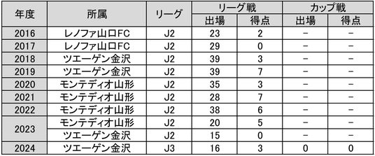 ポルベニル カシハラ-ポルベニル カシハラJrユース - 立正大淞南高 - びわこ成蹊スポーツ大学 - SP京都FC - レノファ山口FC - ツエーゲン金沢 - モンテディオ山形 - ツエーゲン金沢