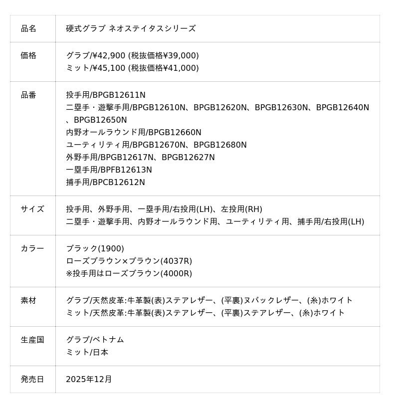 - 「自分に合ったグラブが選べる」各ポジション合計13モデルから選択可能。グラブは従来サイズ構成に小さめと中間サイズも加え選択肢拡大!