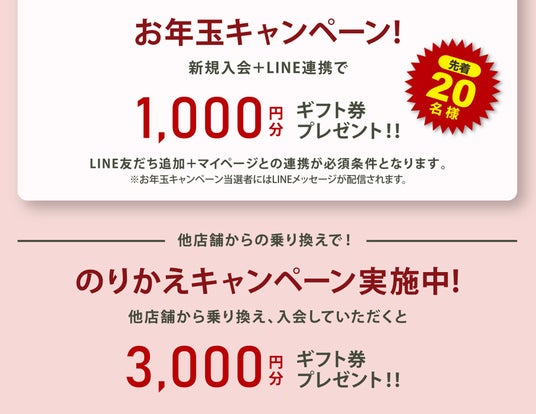 新規入会 + LINE公式アカウント連携で1,000円分のギフトカードプレゼント