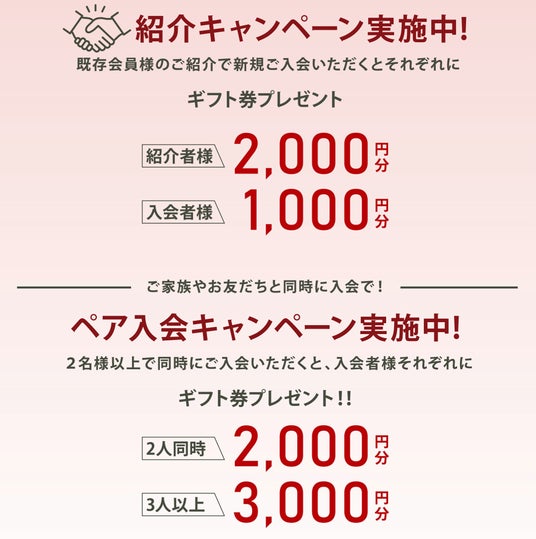 紹介者: 2,000円分、入会者: 1,000円分のギフトカードプレゼント