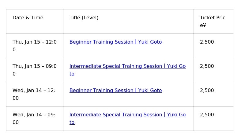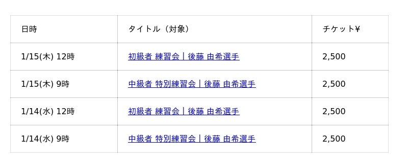 【リリース概要|後藤 由希 選手による 初級・中級 練習会】