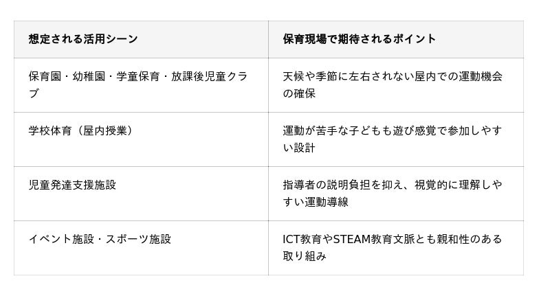 XRスポマルは、フィットネス用途にとどまらず、教育・保育・発達支援分野での活用を想定したAR運動ツールです。