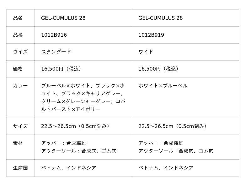 - やわらかい接地感と適度な反発性を備えたランニングシューズ「GEL-CUMULUS 28」を発売