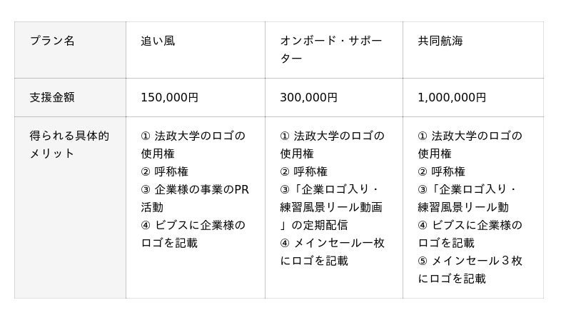Sponsorsでの「法政大学体育会ヨット部」スポンサープラン