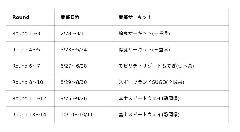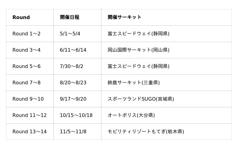 開幕戦は、5月1日「富士スピードウェイ」にて開催される