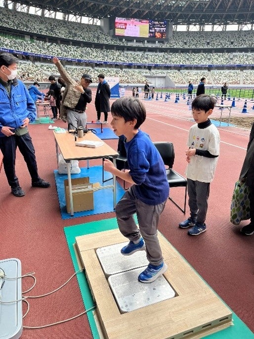 フォースプレートのさらなる社会実装に向けて、当社は2025年12月19日から25日まで国立競技場で開催された「クリスマスワンダーランド2025 in 国立競技場」(主催:NTTドコモビジネス株式会社)において、12月20日・21日の2日間、「MOMO UP」の体験会を実施。2日間で延べ360人の子供らが参加し、「どうすれば得点が上がるのか」と考えながら、地面を蹴る感覚や脚の使い方を試行錯誤する様子が見られました。保護者からも「成長の変化を数字で見られるのは面白い。定期的に測りたい」といった声が寄せられ、親子で楽しめる学習型スポーツとしても好評をいただきました。