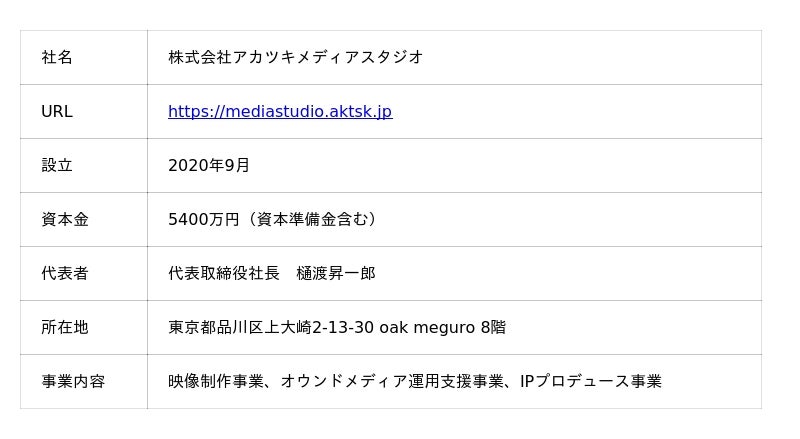 ■株式会社アカツキメディアスタジオ 会社概要