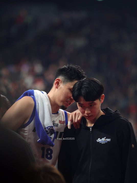 バスケ中、亮伍さん(#18 角野選手)との真剣なツーショット