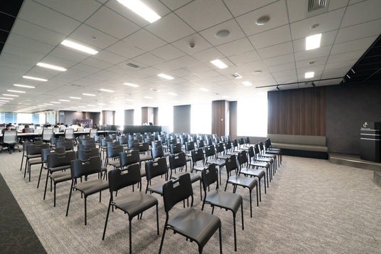 オフィス内のステージと巨大モニター