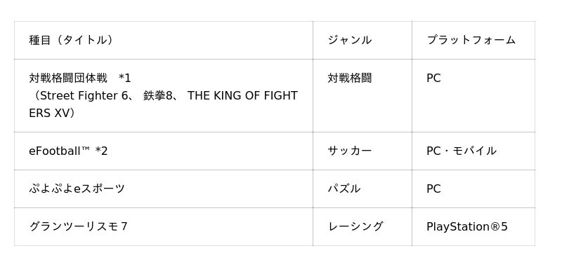 *2 「eFootball(TM)」は、PCとモバイルの2プラットフォームで1名ずつ選手を選出し、1チーム2名で競技を実施します。