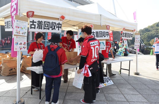 ご自宅にある、使わなくなった古着をスタジアムにお持ちいただくと、回収した古着は、開発途上国で再利用されるとともに、ワクチンの寄付や国内外の雇用創出など様々な社会貢献につながります。前回、2025年10月に実施した際は、専用キット33袋分の古着を回収することができました。