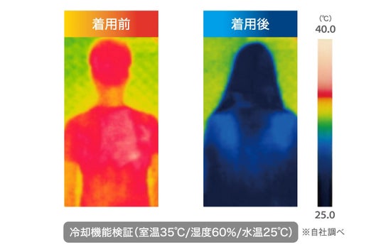 自社での装着機能検証を行い、COOL SHADER装着前後の肌温度を計測したところ、装着後の肌温度は装着前の肌温度の約マイナス15℃と、冷却効果を発揮していることが明らかとなりました。