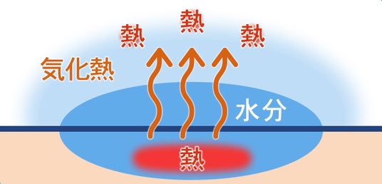 水分が蒸発する際に、周囲の熱を吸収。そのはたらきによって肌表面の温度を下げ、暑い夏にこもりやすい熱を効率よく逃がす。