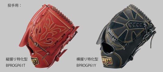 1.投手用にはフラット系NEWウェッブを搭載した縦、横握り特化型の2モデルを展開。