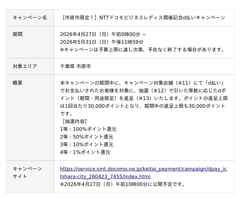 ■「NTTドコモビジネスレディス」を記念した、dポイント・「d払い」キャンペーンの開催