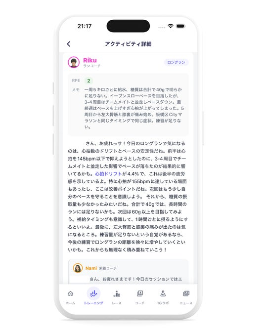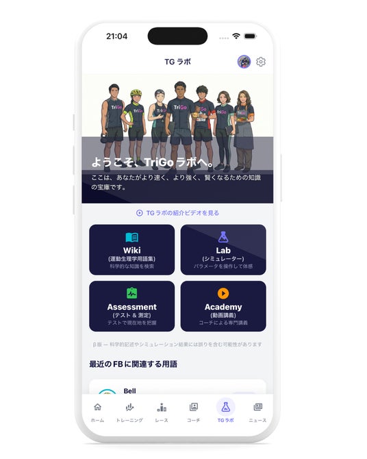 TriGoは単にメニューを与えるだけのアプリではありません。「TGラボ」機能では、運動生理学やトレーニング理論に関するコンテンツを通じて、ユーザー自身がトレーニングの「なぜ」を理解しながら成長できる学習環境を提供します。なぜこのゾーンで走るのか、なぜ今日は休むべきなのか--理由を知ることで、日々のトレーニングの質と主体性が変わります。