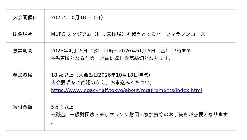 - Run for Children!東京レガシーハーフマラソン2026チャリティ寄付金及びチャリティランナー募集!