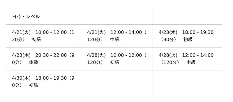 日程|4月開催予定(後半)