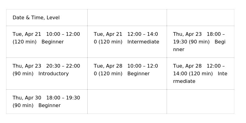 Schedule| Late April Sessions