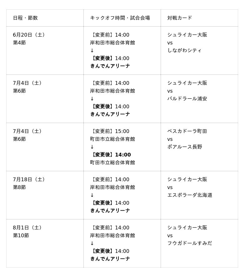 開催日時・会場名称変更のお知らせ※4月20日発表【メットライフ生命Fリーグ2026-27】