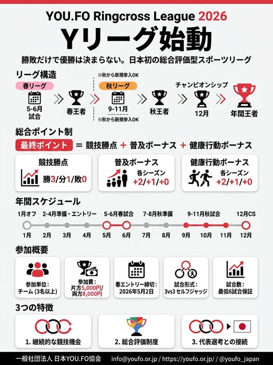 - 勝敗だけで優勝は決まらない。新スポーツ「YOU.FO」公式リーグ「Yリーグ」2026始動!