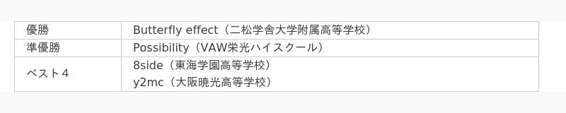- 「第9回高校生ダンスバトル選手権」結果速報!3on3チャンピオンは二松学舎大学附属高等学校の“Butterfly effect”、1on1チャンピオンは“Rikuya“に決定!