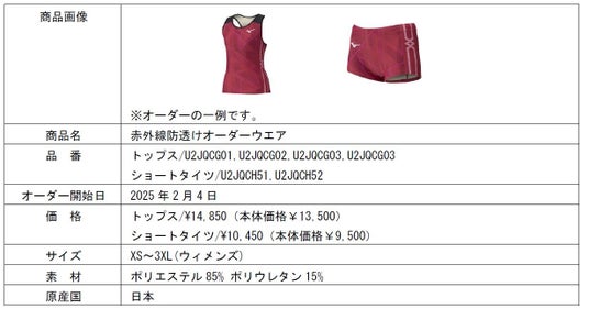 ミズノは、赤外線カメラに対する防透け性を向上させた陸上競技用ユニフォームの盗撮対策モデルを、オリジナルオーダーシステム「MIZUNO Custom Studio」で2月4日から展開します。