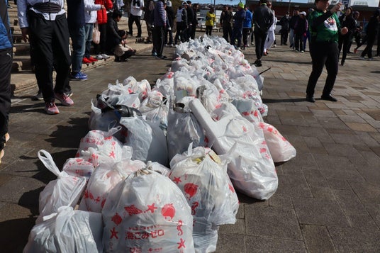 地元のボランティア団体「いわきサンシャイン拾活クラブ」が中心となり、サンシャインマラソンに参加予定のランナーや地元企業を始め、地域の清掃活動を行っているグループや高校生など、あらゆる世代の方々が集まり、可燃ごみ125袋・不燃ごみ57袋の合計183袋のごみを回収。昨年は、可燃ごみが135袋だったので10袋分が減りましたが、不燃ごみは45袋から57袋と12袋分も増えてしまいました。「拾う人が増えるよりも、捨てる人が少なくなるといいよね」という参加者の声も聞こえ、ポイ捨て抑止の啓発にも繋がるイベントになりました。美しくなったいわき市で、ランナーの皆さんをお迎えします!