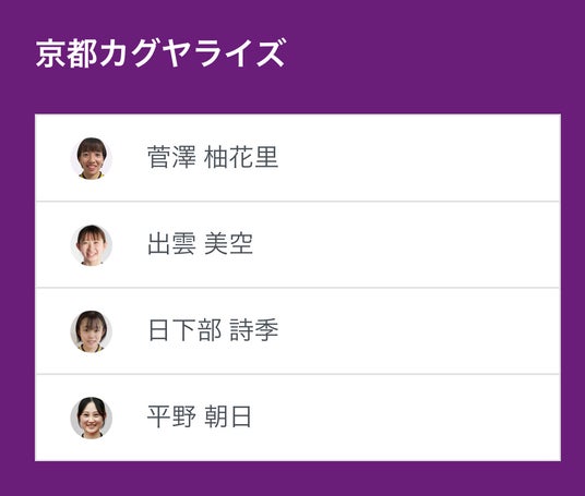 ノジマTリーグ 2024-2025シーズン 公式戦 2月15日開催の「 京都カグヤライズ vs 九州アスティーダ 」のベンチ入り選手を発表いたします。
