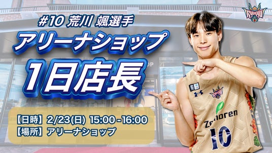 バイウィーク期間中も皆さまへ元気をお届けできるよう、#10 荒川颯選手が店頭でみなさまをお出迎えし、交流を行います。
