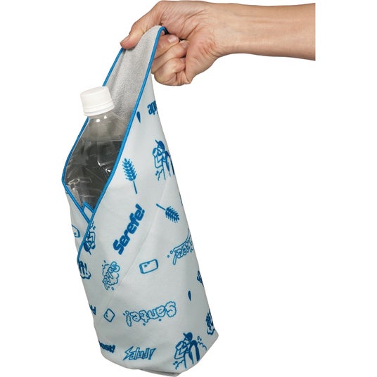 表面は大西土夢氏のイラストが描かれています。裏面はアルミ蒸着シートが付けられており、食品や飲料を包むことで保冷・保温ができます。