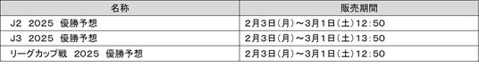 J2、ルヴァンカップ優勝チーム予想は3月1日(土)12時50分まで、J3優勝チーム予想は13時50分まで販売