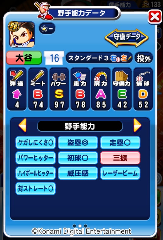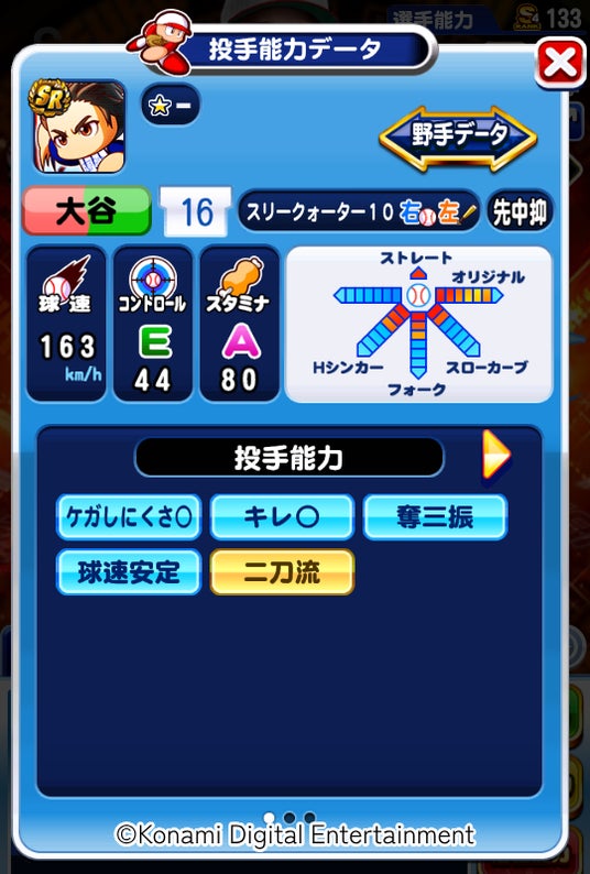 そのほかにも、大谷選手の特徴を踏まえて能力値を設定しています。