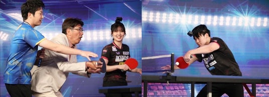 世界で活躍する卓球選手の”驚異的な能力の検証”と題して、「卓球トリックショット」に挑戦いただきました。球を操る3人の能力に石橋さん・三田さんも大盛り上がり!