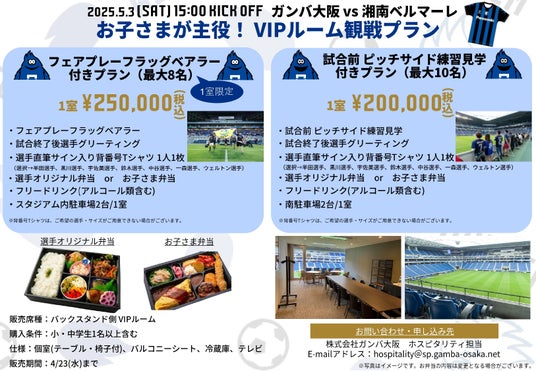 5/3(土・祝)明治安田J1リーグ 第14節 湘南ベルマーレ戦にて、ゴールデンウィークにお子さまが特別な体験をお楽しみいただけるVIPルーム観戦プランを販売いたします。