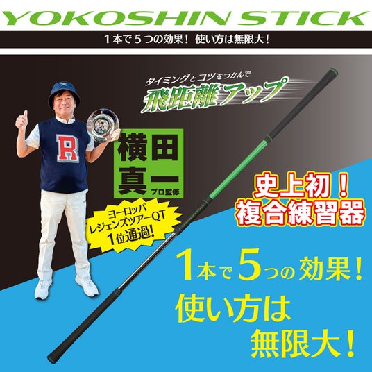 - 横田真一 プロ考案 ヨコシンスティック 発売 タイミングとコツをつかんで飛距離アップ! 遊びながら楽しく練習! リンクス ゴルフ