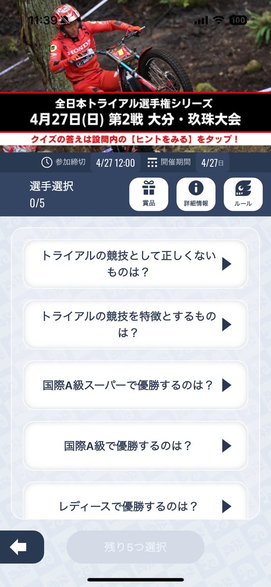 今回の予想企画では、国際A級スーパー(IAS)、国際A級(IA)、レディース(LTR)クラスで優勝するライダーの予想と、トライアルについてより知ることができる関連クイズに答える企画となります。