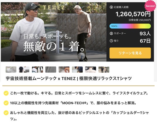 プロジェクト名:宇宙技術搭載ムーンテック x TENEZ|極限快適リラックスTシャツ販売ページ:https://www.makuake.com/project/tenez06/