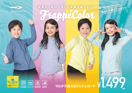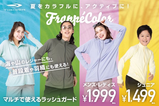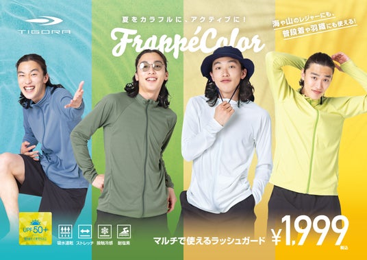 - 夏をカラフルに、アクティブに! FrappeColorで彩る、マルチで使えるラッシュガードを順次発売!